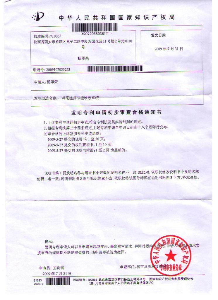 | 公司今日正式申报采注井节能增效系统发明专利 |